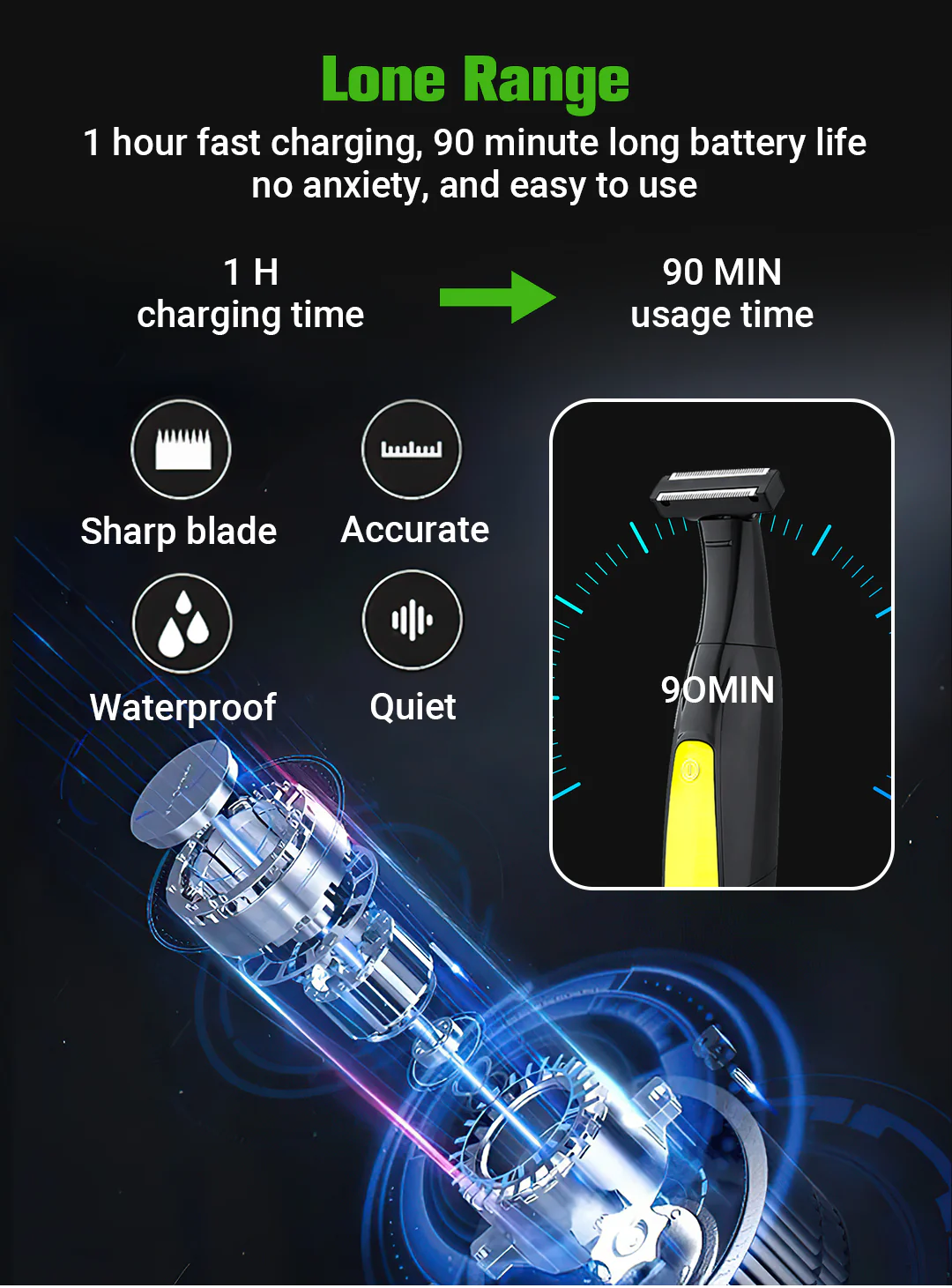 USB TYPE-C RECHARGEABLE. LOW NOISE - This hair trimmer supports 2 hours of shaving after 2 hours of charge. convenient for business trips and no need to worry about the charging cable. Low noise design allows you a comfortable shaving experience.