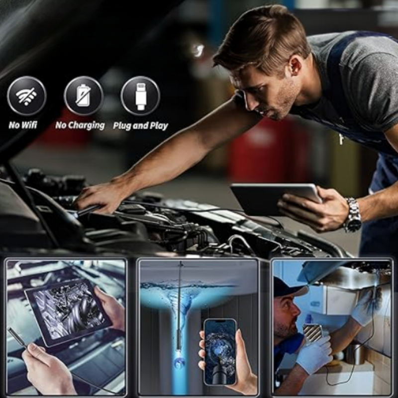 With this endoscope camera, you can easily see into tight, hard-to-reach spaces. The flexible cable and clear lens make it ideal for home repairs, car maintenance or pipe inspections. It is compact and easy to use, helping you find problems quickly and accurately.