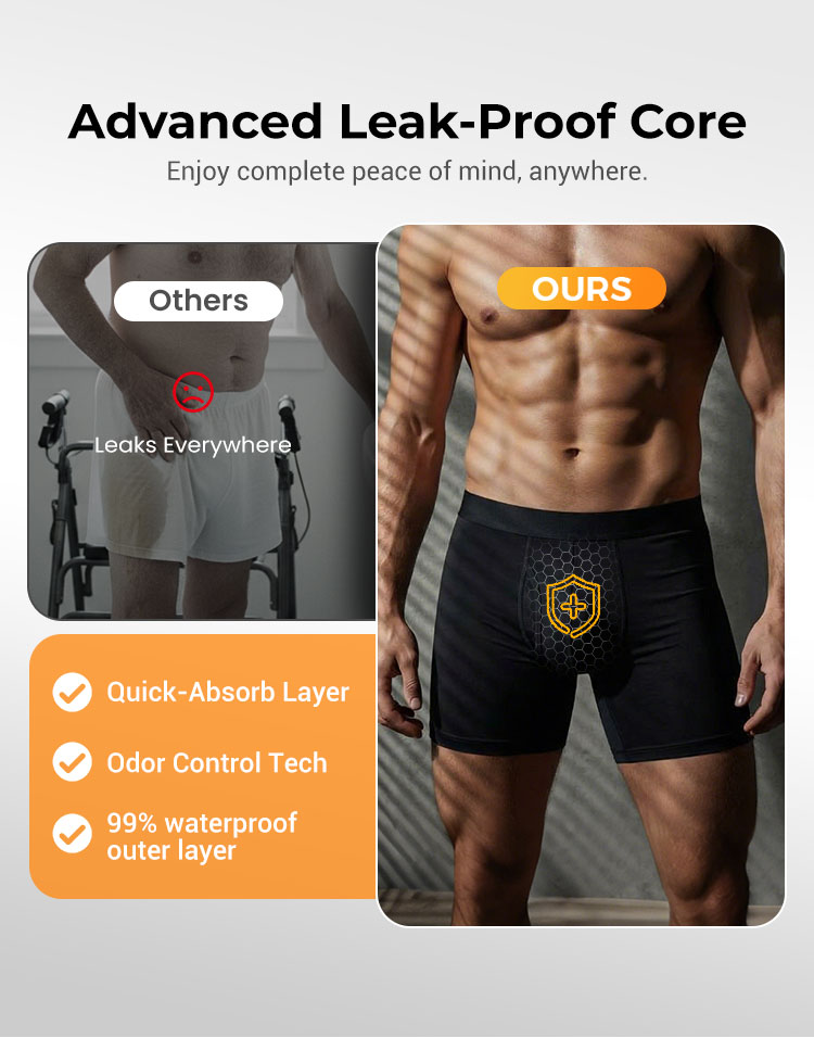Men's Ultra-Absorbent Incontinence Boxer Briefs