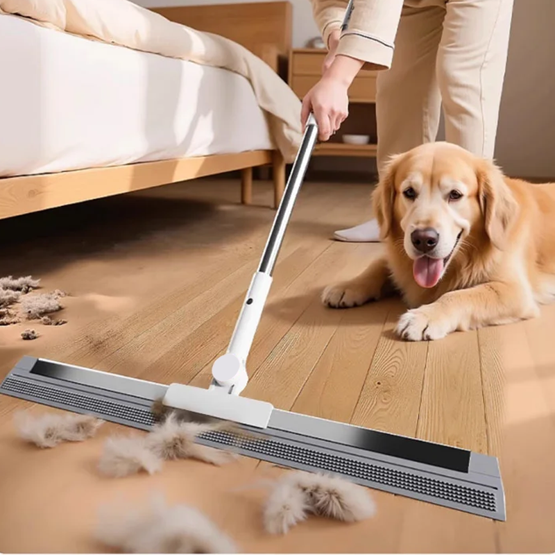 DOUBLE-SIDED SILICONE SCRAPER – CLEANING & SCRAPING IN ONE MOVE: This broom is designed with a soft. double-sided silicone blade that provides excellent ground contact. It sweeps. scrapes. brushes. and wipes—reducing the need for multiple tools. Whether you're removing dust. water. or pet hair. the flexible silicone edge glides smoothly over surfaces without leaving marks.