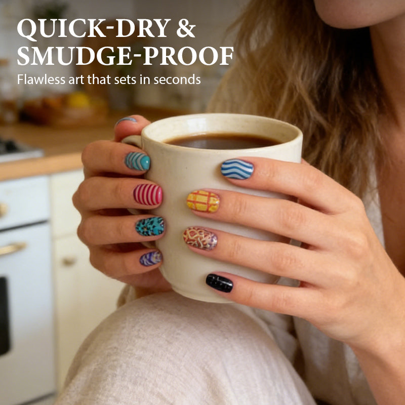 FADE-RESISTANT & WATERPROOF: Your beautiful creations will remain vibrant and intact for longer. The waterproof and fade-resistant ink ensures your nail art withstands daily activities without chipping or losing its brilliance.